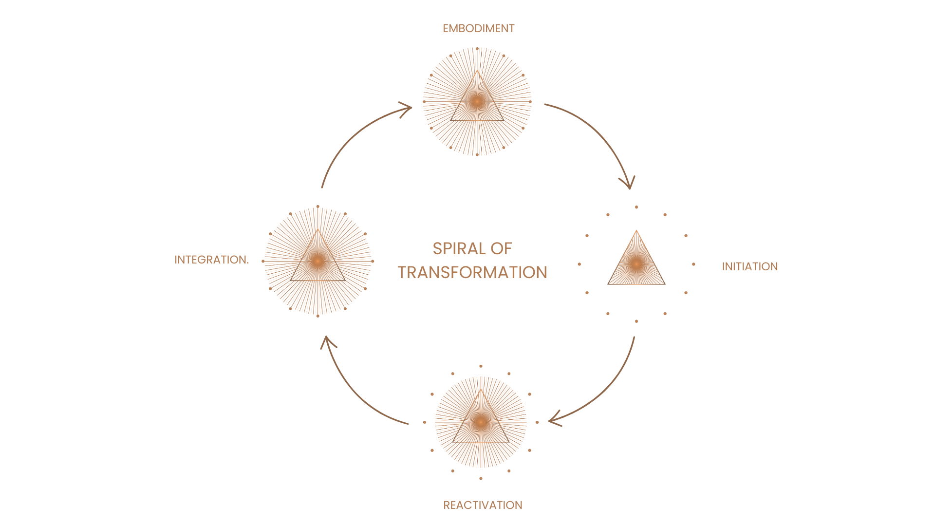 This method deepens your embodiment where all parts of you can be seen, heard + restored to your original divine blueprint, your true divine essence. It is based off my Spiral of Transformation - a deep embodied + earthed method (using elemental, directional + energetic alchemy) where you are initiated, reactivated, integrated + embodied which allows for permanent alchemical transformation.